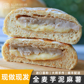 私沫烘焙全麦芋泥麻薯软欧包面包轻油糖轻卡营养早餐包...