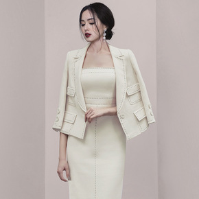 秋冬洋气轻奢小众时尚欧美女装小香风翻领西装中长款连...