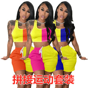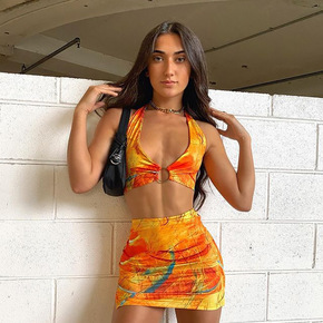 2021夏季欧美跨境印花撞色拉环挂脖背心时尚高腰包...