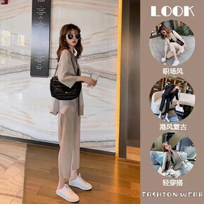 短袖T恤女套装2022春夏小个子上衣小香风时尚气质...