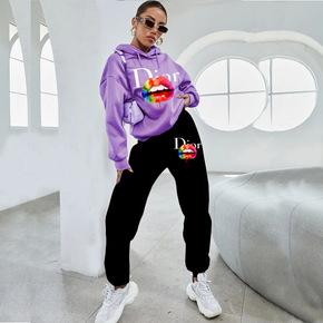 2022秋冬新款外贸欧美亚马逊运动时尚连帽卫衣套装...
