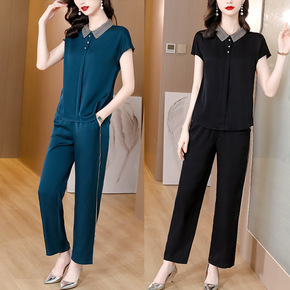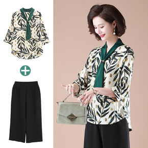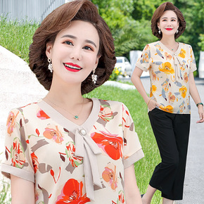 妈妈夏装套装新款中年大码洋气短袖上衣中老年女装时尚...