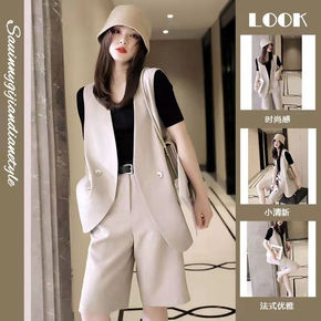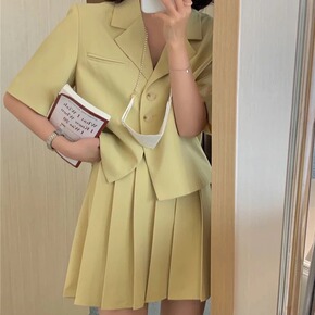 2022夏季新款韩版时尚chic学院风翻领短袖西装...