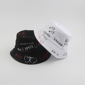 欧美跨境帽子女夏季新款创意涂鸦双面渔夫帽男街头潮流...