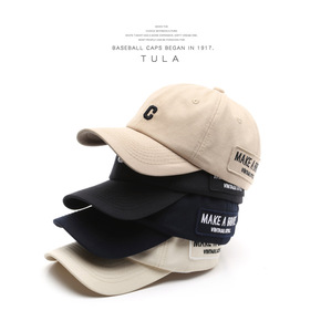 韩版日系潮女春夏字母贴标弯檐棒球帽户外男运动防晒帽...