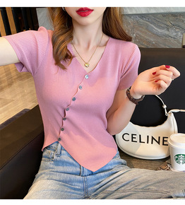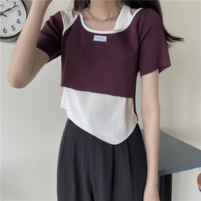 不规则短袖针织衫女夏季2022年网红新款打底衫设计...