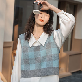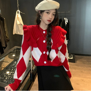 秋冬季2022韩版新款长袖撞色修身短款针织衫女翻领...