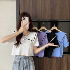 夏季2022新款设计感海军领短袖女针织衫ins学生...