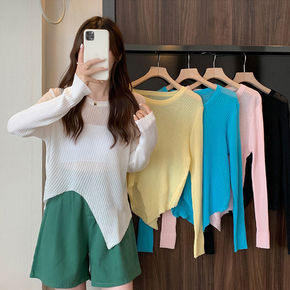 冰丝防晒针织衫女夏季2022新款不规则设计宽松薄款...