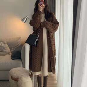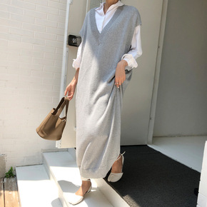 实拍实价~长款马甲外套过膝韩版宽松大码针织衫bf风...