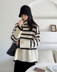 条纹长袖针织衫外搭2021秋冬新款韩版慵懒风宽松高...