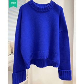 克莱因蓝套头毛衣女秋冬设计感小众复古炸街慵懒宽松针...