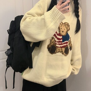 秋冬韩版学院风呆萌可爱小熊毛衣女宽松长袖套头外穿针...