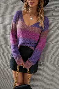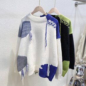 2022春季新款欧美外贸跨境女式扎染毛衣套头不规则...