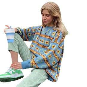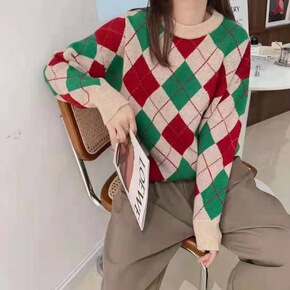 针织衫女长袖宽松秋冬2021新款潮印花宽松毛衣女装...