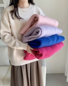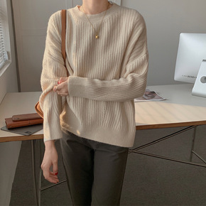 日系软糯加厚套头毛衣2021秋冬新款宽松慵懒风纯色...