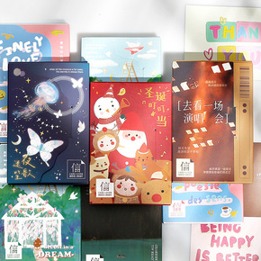 信的恋人盒装明信片圣诞节跨越山海手绘卡片文艺创意水...