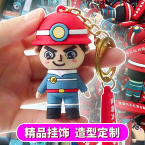 建模创意钥匙扣挂饰可爱卡通公仔工人消防员包包软胶P...