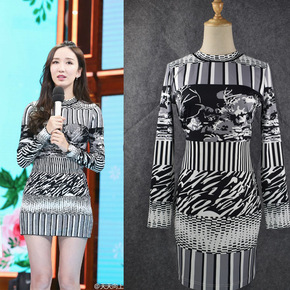 2016秋冬新品女装明星同款天天向上娄艺潇同款印花...