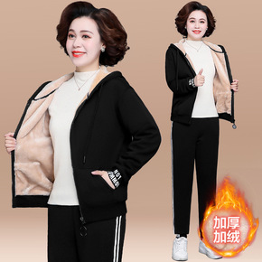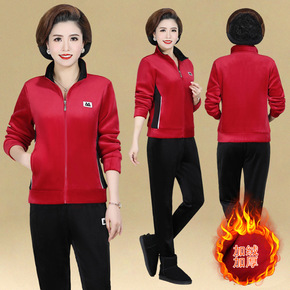 中老年女装妈妈冬装双面金丝绒运动服外套中年人加绒加...