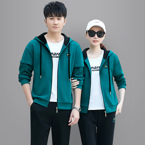 情侣装春秋季运动套装男士外套2021新款开衫卫衣休...