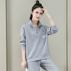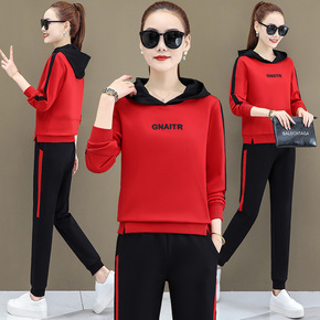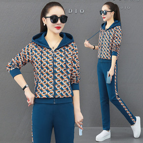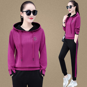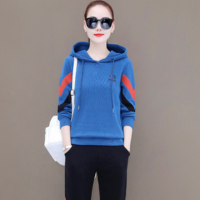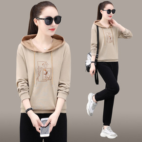年轻妈妈装春秋运动服休闲套装两件女款套头连帽卫衣减...
