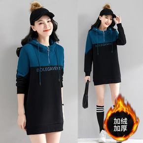 加绒卫衣女2021年新款秋冬中长款潮牌复古港风加厚...