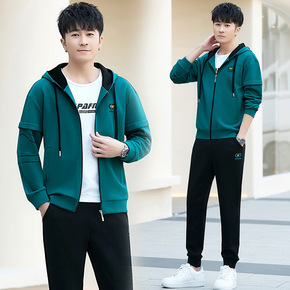 运动套装男春秋2021新款韩版潮流连帽开衫卫衣男士...