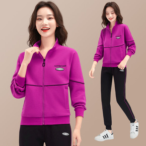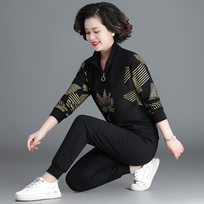 2022春秋中老年休闲运动套装女码装卫衣两件套中年...