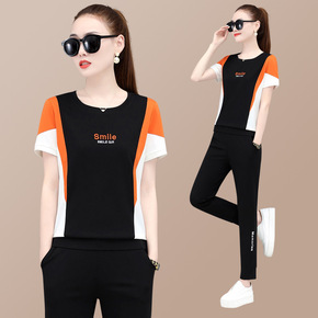 运动休闲套装女夏季新款2022年韩版时尚拼色减龄卫...