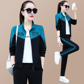 彩条运动套装女春秋2022新款时尚长袖宽松跑步休闲...