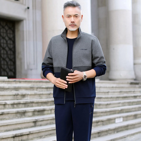 春秋季中老年运动套装卫衣三件套男士长袖宽松爸爸休闲...