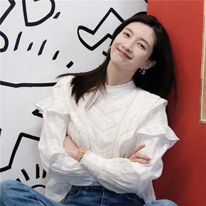 现货江疏影明星同款蕾丝镂空衬衣荷叶边上衣法式宫廷风...