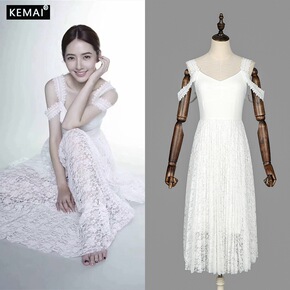 KEMAI柯麦明星郭碧婷同款白色勾花镂空刺绣吊带蕾...