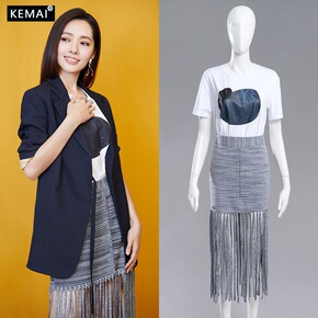 KEMAI柯麦郭碧婷明星同款两件套女夏白色T恤西装...