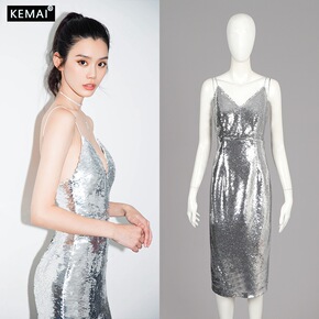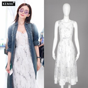 KEMAI柯麦[]奚梦瑶明星同款性感吊带裙露背修身...