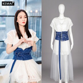 KEMAI柯麦[]陈乔恩明星同款蕾丝花边两件套牛仔...
