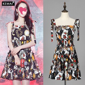 货源类别:现货 主图来源:实拍有模特 风格:甜美 图案:印花 工艺:印花/印染 裙长:短裙 ...