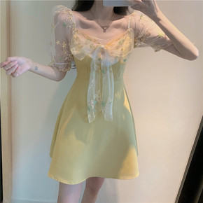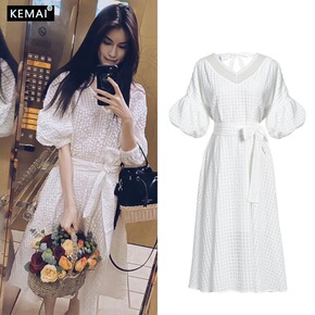主图来源:实拍有模特 货源类别:现货 风格:甜美 图案:纯色 工艺:印花/印染 裙长:中裙 ...