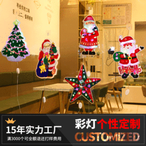 led圣诞老人麋鹿吸盘灯房间橱窗装饰雪人圣诞树五角...