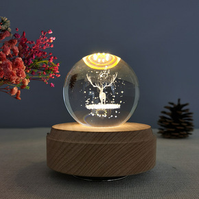 水晶球音乐盒木质音乐盒透明水晶球旋转八音盒3d小夜...
