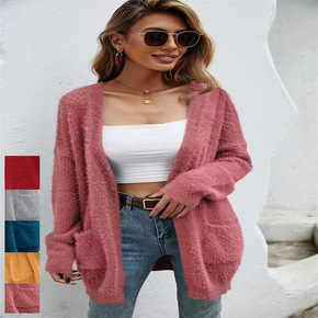 2022针织开衫女百搭纯色单排扣V领长袖纯色外套女...