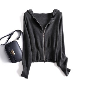 小个子双拉链连帽针织开衫短款纯色韩版休闲显瘦外穿春...