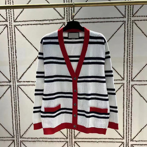 批发G家条纹针织开衫简约春夏撞色长袖上衣小香风NV...