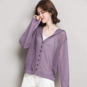 2021春夏新款网红连帽针织外套开衫薄款冰丝百搭空...