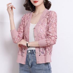超薄针织开衫女外套薄款宽松大码复古短款外搭空调防晒...