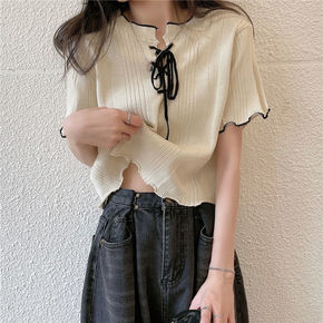 短袖圆领短款修身打底衫上衣女春夏内搭新款韩版外穿开...