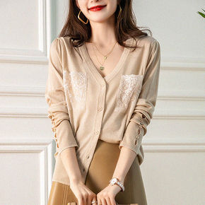 2022春夏装圆领冰丝针织开衫女士新款长袖上衣薄款...