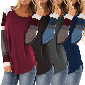 2022春秋新款女装打底衫 wish亚马逊欧美圆领...