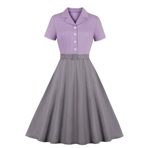 外贸2020新款欧美短袖亚马逊复古拼接撞色大码女装...